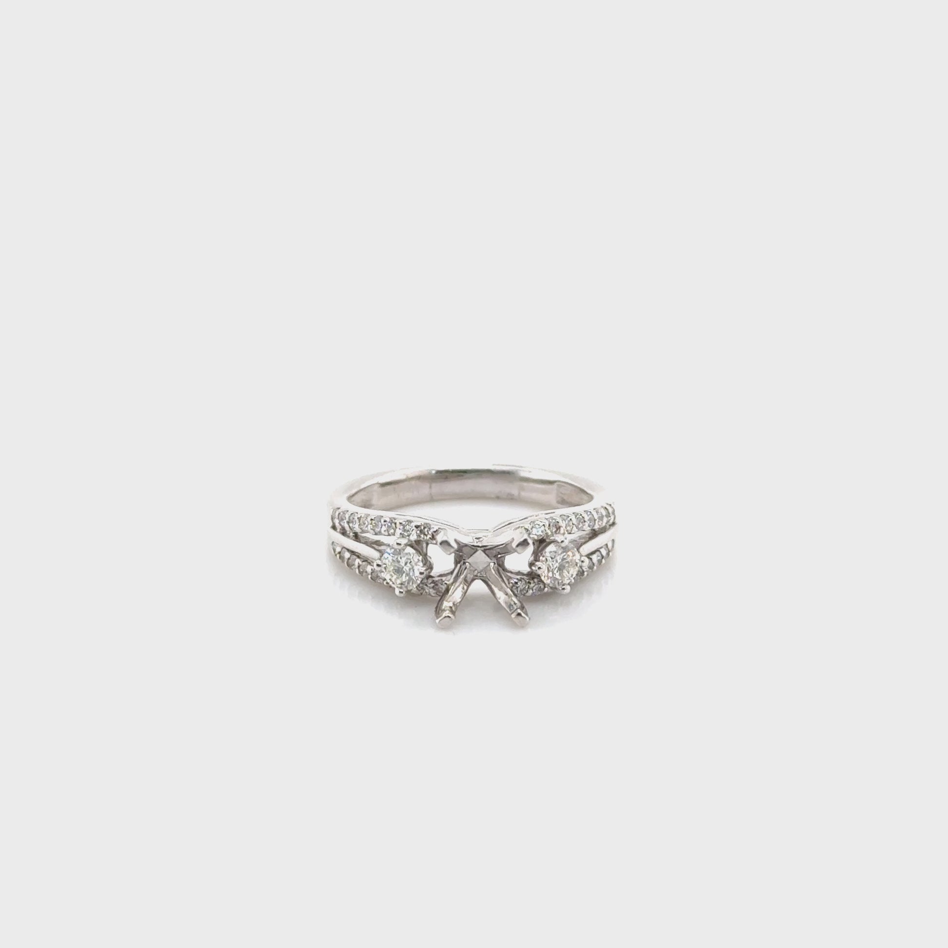 A unique ring for your unique love story. The split shank design is adorned with sparkling diamonds that gracefully flow down both sides, adding a touch of sophisticated charm and ensuring it catches the light from every angle. A constant reminder of the special bond you two have and the exciting journey that lies ahead.