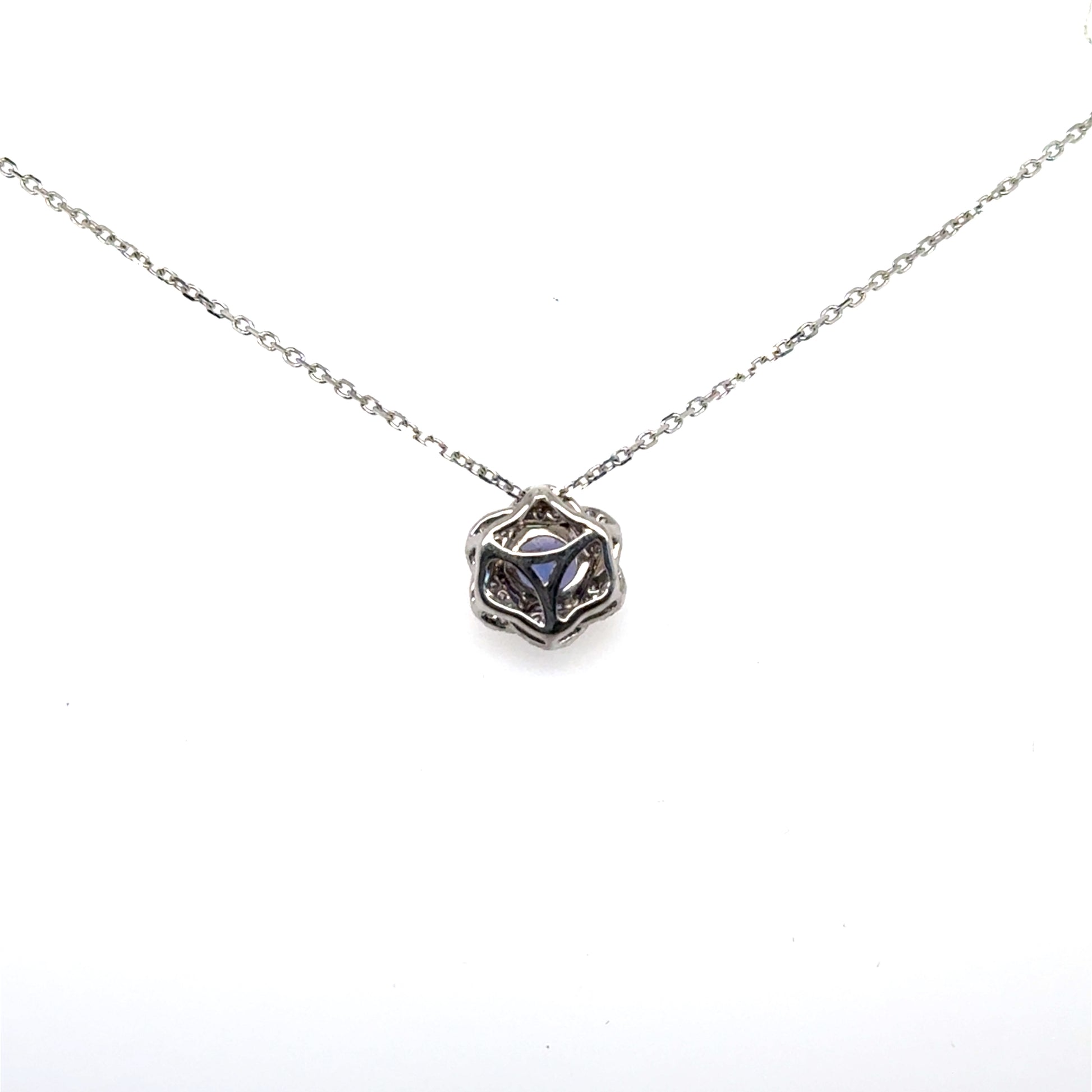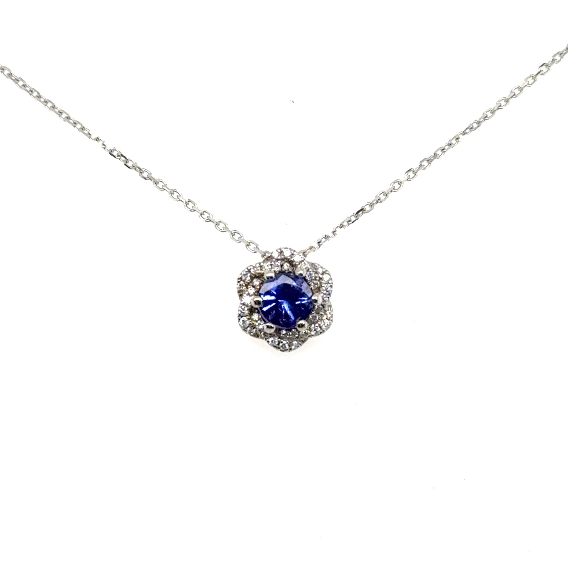 The Blue Dahlia Pendant brings a floral touch to your style, with a vibrant blue tanzanite center surrounded by a delicate diamond halo. Its unique, flower-inspired design adds a hint of charm and sophistication. Crafted in white gold, this pendant has a timeless appeal that feels both graceful and fresh.