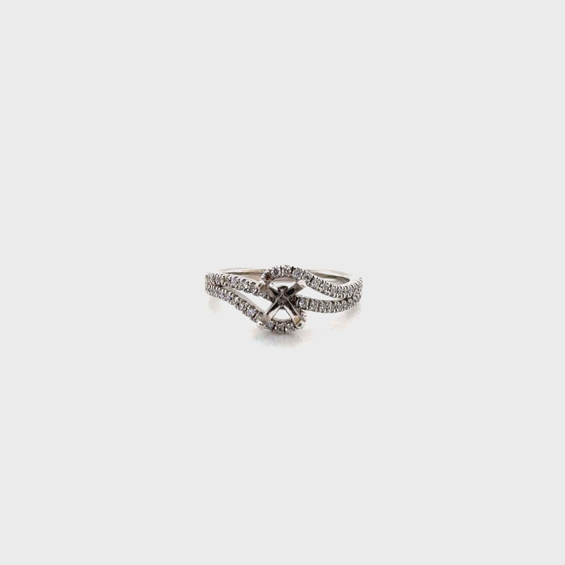 Perfect for the bride who likes simplicity with a twist. A breathtaking center stone (available in various cuts, shapes, and carat weights) is held aloft by the band that gracefully curves and flows around it, creating a seamless, organic silhouette. This design symbolizes the everlasting connection between two souls, destined to be forever together.