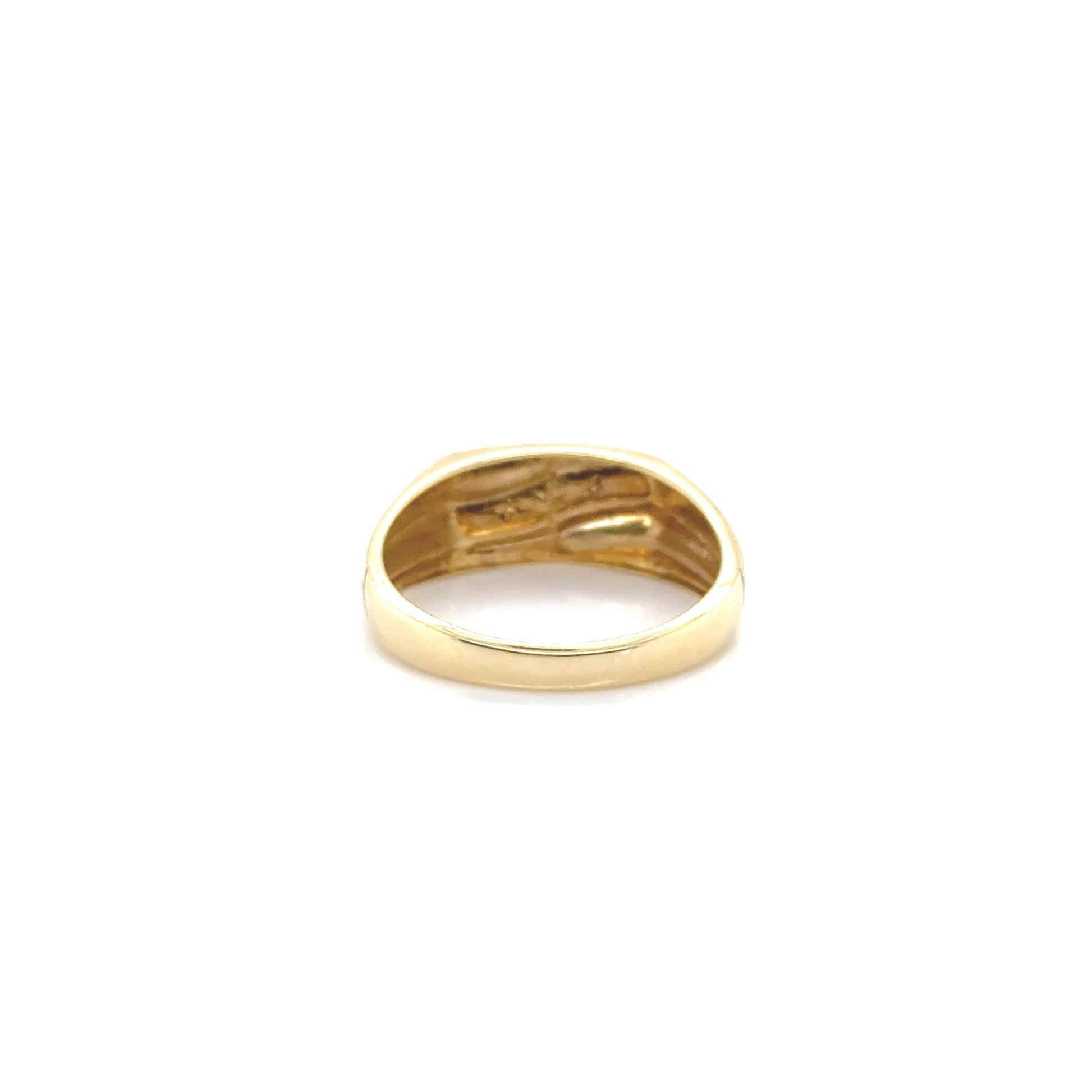 The Eclipse Ring features a unique and intricate pattern that mimics the dance of light and shadow during an eclipse. Its smooth and polished surface reflects the brilliance of the sun, while its darkened accents create a sense of depth and contrast, adding to its dramatic appeal.