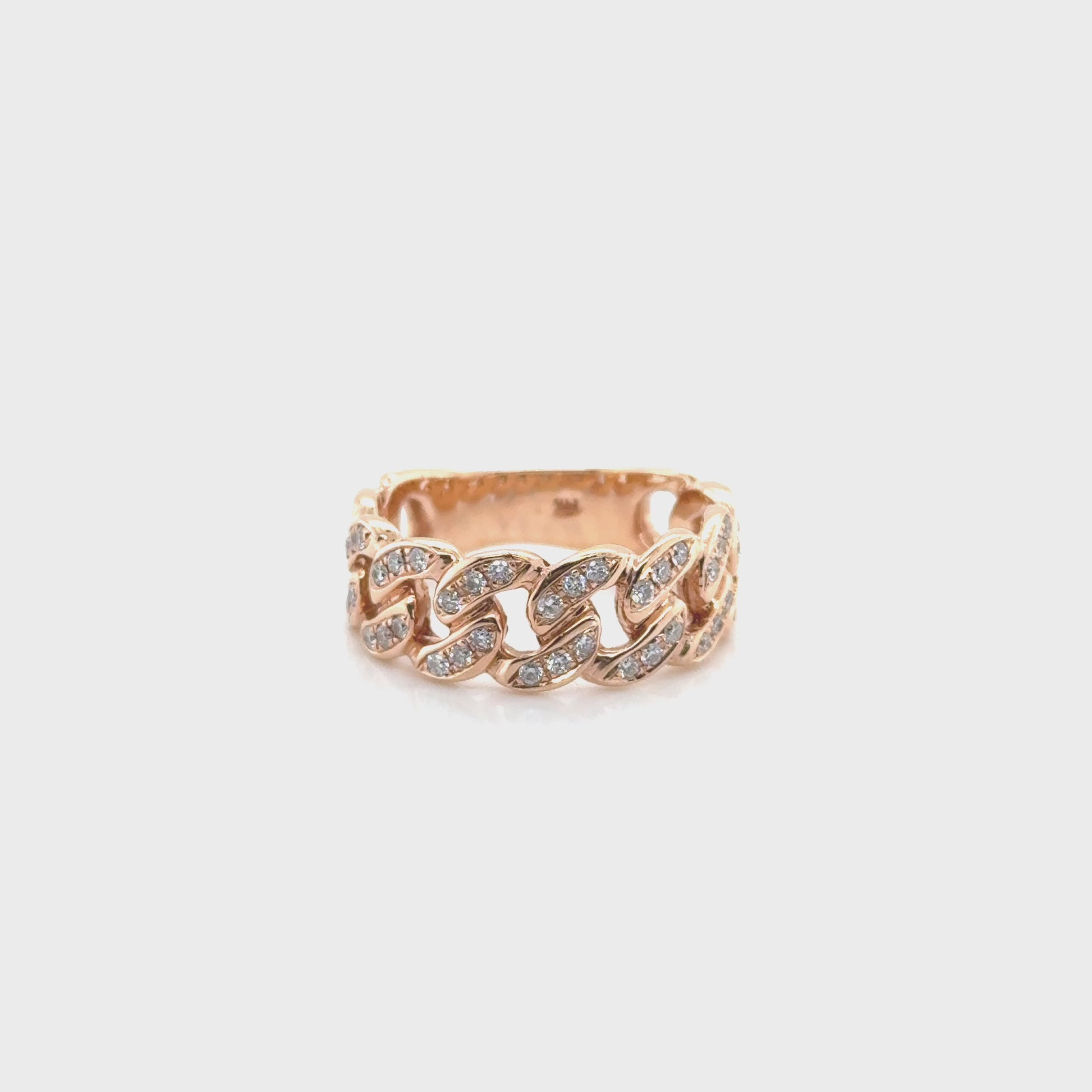 The Cuban Link Ring- a bold and distinctive statement piece. Inspired by the iconic Cuban link chain, this ring features a unique design characterized by interlocking links that create an eye-catching pattern.
